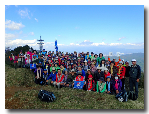 今月は東静歩、掛川歩合同の大会であり合計120名参加のウオーキングとなった。天気は秋晴れで正に絶好のハイキング日和でした。スタートから昼食の浜石岳山頂までは、ちょっと厳しい上りなので 脚力に自信の無い参加者36名は浜石野外センターまでバスで行く事にした。