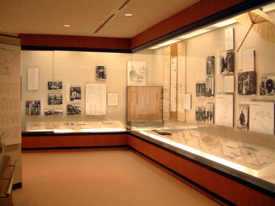 牧水と旅のコーナー(右側)と、牧水と酒のコーナ(正面)。