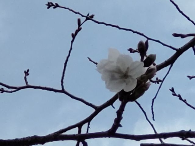 春分の日のこの日に合わせるかのように、境内の桜もぽつりぽつりと花が開いて「開花宣言」といえる状態になりました。昨年より5日ほど早い開花宣言です。