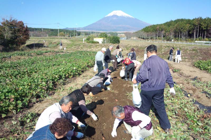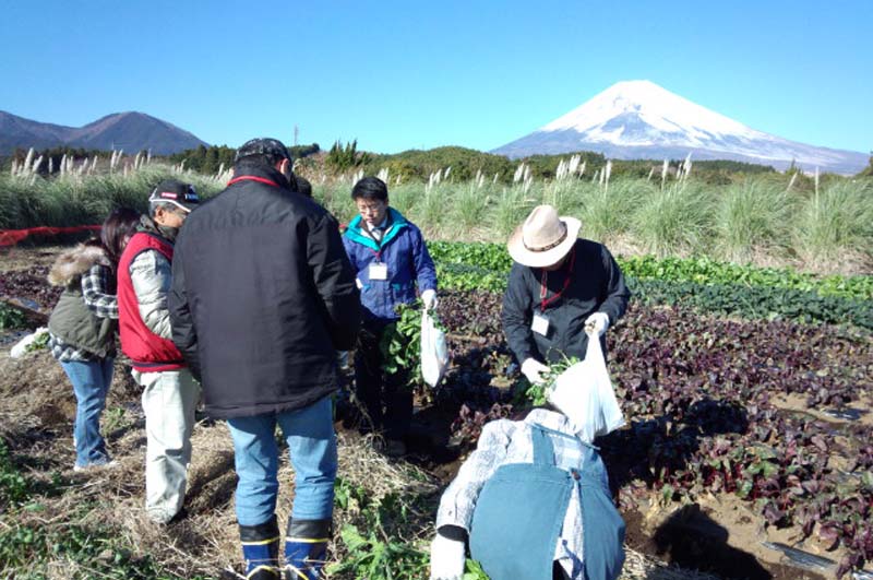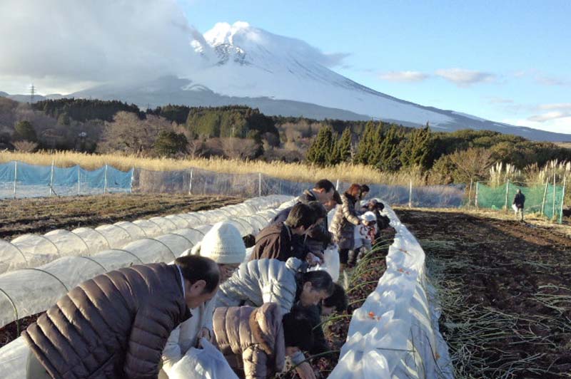 富士山を眺めながらの収穫体験、皆様に大好評です。