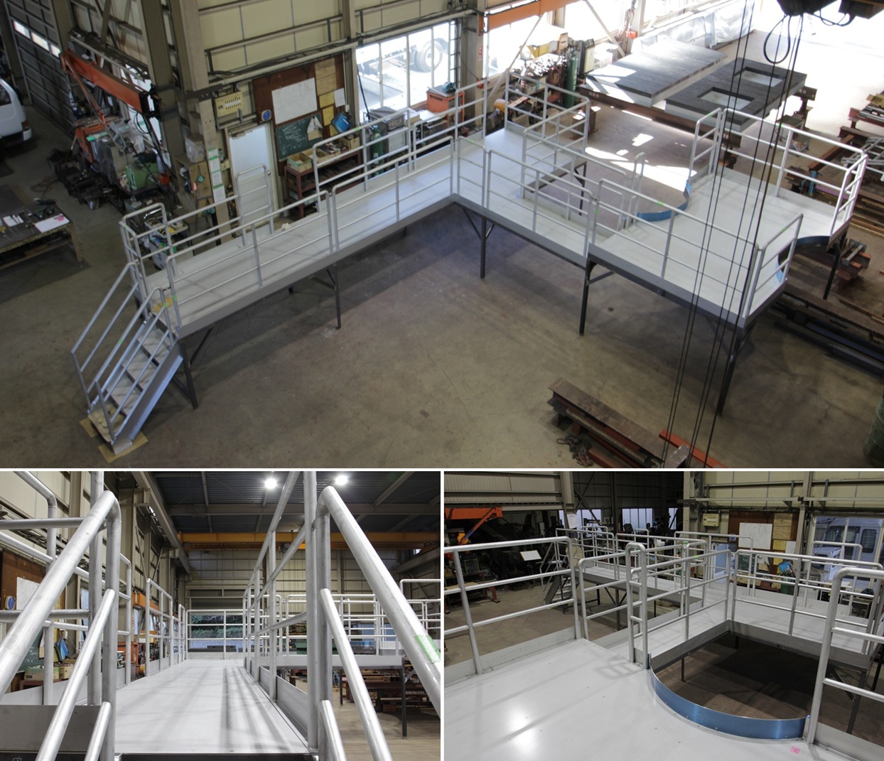 A様 プラント用点検デッキ:工場内仮組立て フレームSS、SUS304φ42.7、φ35.0、PL4mm、他