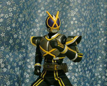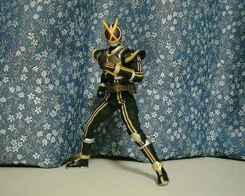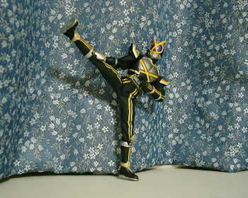 現在、放映中の仮面ライダーファイズから準主役の仮面ライダーカイザです。 こちらの太腿増量にはスポンジを使ってますので、↑の様に可動に支障がありません。 手足のフォトンストリーム(ライン)はイエローの反射テープなので、光に当てると反射して光ります。 なお、手の指と足の裏は塗装不足だったので、ラッカー塗料でリペイントしてあります。 BACK TOP NEXT