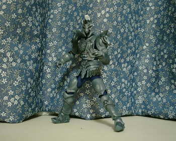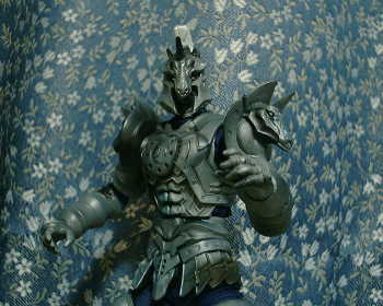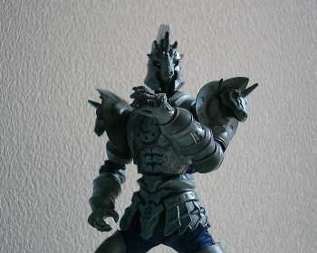 現在、放映中の仮面ライダーファイズからオルフェノク(敵)側の主役のホース・オルフェノクです。 こちらは元々のソフビの出来が素晴らしく、そのまま素体くんを被せてあるだけです。 素体くんのスーツ色が青なのはご愛嬌(^^ゞ 単に黒が売ってなかったからです。 それにしてもこのソフビ、この造形でたった700円とは恐るべしBANDAI! BACK TOP NEXT