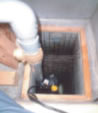 し尿・トイレットペーパー以外の異物を取り除きます。し尿がある程度溜まるとポンプでばっき槽に汲み上げます。 |