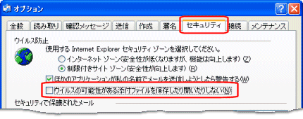 Outlook Express 6.0 のセキュリティオプションが有効に設定されている場合や、Outlook