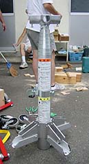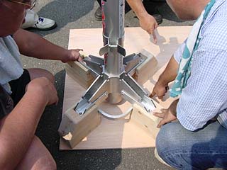 ← これが今年の秘密兵器!! こちらは取り付け作業中→ 今年も競り合い時の 緑町山車は必見です!! ぜひ、競り合い開始前から ご覧くださいね。 |