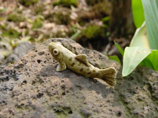 ![]() イワナのつもり…模様だけですね。 (長さ6.5cm程度、信楽土×織部釉) |