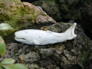 ![]() クジラ:背中や尾にはフジツボ(赤土)を付けてみました。 (長さ11cm程度、信楽土+赤土×石灰釉) |