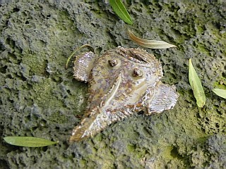 ![]() 不細工なアンコウ (長さ8cm程度、信楽土×赤萩釉) |