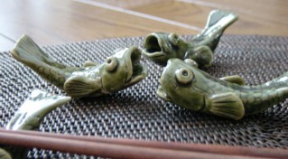 カエルの香炉 ドジョウの蓋物 お魚の箸おき 古文様の絵付け