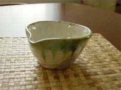 | 片口の器は食卓にのぼると、 とってもお洒落。 何を盛り付けても、カッコイイのが 不思議なところです。 本来はタレを入れたりするのかもしれませんが、 我が家ではもっぱら、 漬物、煮物、納豆、佃煮etcの器としています。 |