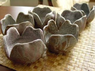![]() 母さん作の割山椒6つセット。本当にめずらしく揃いものです。(赤土×志野釉) |