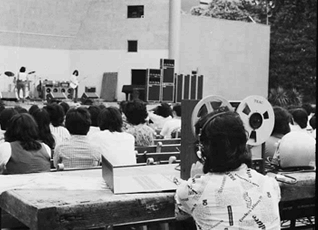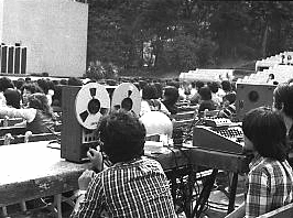 | ●新入生歓迎コンサート録音の縁で「軽音楽研」の他のバンドからも声がかかるようになりジャズコンボだけでなく、ロックバンドの演奏会の録音も行うようになりました。 そのロックバンドのひとつから、「夏に日比谷野外音楽堂で開催されるコンサートの録音をやってみないか」と依頼されました。都内の大学のロックバンドが一同に会したコンサートです。 我々にとって「日比谷野音」での録音などというのは夢のような話で、勿論即諾しました。ただし、マイクセッティングなど一般の人間より多少経験があるといっても所詮素人、PAはプロがおこない、そのミキシング後のラインを入力するという作業でした。それでもコンサートを後援していたYAMAHAの担当者と打ち合わせしたり、すっかり気分はセミプロにでもなった気分でいました。 ●当日は午前中から夕刻までぶっとおして各大学のロックバンドが演奏を繰り広げる長丁場でした。参加大学は日・明・蹊・津・洋・青・城・早(出演順)で、事情により当のC大は欠席となっていました。 その全曲を録音して各バンドに配る必要があったのでテープ確保にも注意しました。録音は38cmではテープがいくらあっても持たないので19cmでおこないました。 |