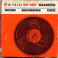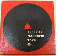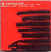 これも日立ブランドのテープです。ほとんどがテープの写真を箱にデザインしてあるのに対してこのボックスは赤と黒2色で中央の穴で録音テープとわかるインパクトの強いデザインです。 所有の方のクレジットでは1963年の録音となっていますので当時としては斬新なパッケージだったのではないでしょうか。 |