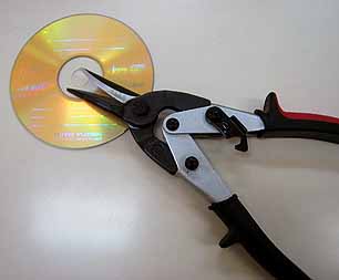 | ■最近テレビを見ていたら某大手通信会社の本社移転のニュース番組で職員がCDをハサミで切って処分している映像を写していました。ハサミは普通の事務用でCDを切るポーズを取って「不要な情報は処分する」という事をアピールしていたのでしょうが、いかにも「ヤラセ」っぽかった。サイトをご覧の方なら事務用ハサミでCDが切れない事はご存じだろうと思います。 ■しかし、いかにヤラセとはいえハサミを使って処分する場面を写すのだから、できない事は無い。それでは実際どの程度のハサミ(ニッパー)を利用すれば断裁できるのか?とDIYショップを覗いてみました。 ■せっかく購入するのですから、CDが楽に断裁できることを第一条件、そしてできるだけ安価なことを目安に工具売り場を探してみると結構該当しそうなカッター、ニッパーが並べてありました。そんな中から、用途として『ステンレス・ポリカーボン・トタン板などの切断作業に最適です』と表示があった画像1のニッパーを購入してみました。価格は税込み980円也。 |