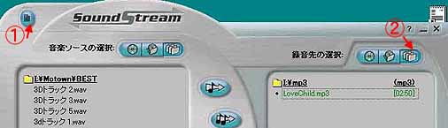 | WMPをはじめ音楽CDからMP3やWMAに変換するソフトは、現在多数ありますが、ハードディスク内のWAVEを変換する事ができない、あるいは変換方法が解らないものが多い。 EasyCD5もその一つでMP3変換機能はついていますがWAVEから変換する手順はよく説明されていません。 ここではHD内に格納されたWAVEをMP3やWMAに変換する方法を解説します。 (1)SoundStreamを起動する(図3) (2)@をクリックして「プロパティ」を表示する(図4) |