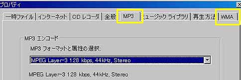 | (3)MP3のタグで変換ビットレートを選択します。デフォルトでは160Kbpsとなっていますので図4は128Kbpsに変更した例です。WMAにしたい場合の設定はWMAのタグで同じように選択します。 |
