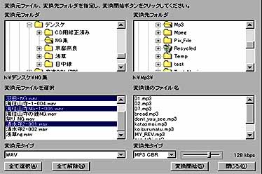 図2 ファイル変換の画面。 変換元でMP3を選んでWAVEファイルに変換も可能。 |