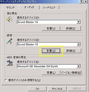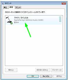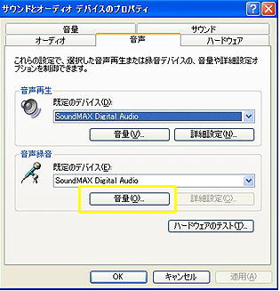 | コンパネ→「サウンドとマルチメディア」をクリック→音量ボタンをクリックして表示されるRecord