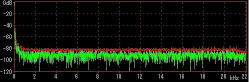 図3.サブマシンのノイズレベル(赤は500倍増幅時)![]() サブマシンでは増幅した場合聞き取れるノイズには若干ハムが混じっていた。波形は増幅しなければ直線で全く聞き取りはできない。ノイズレベルは-110db程度。かなりテープヒスに接近している。 |