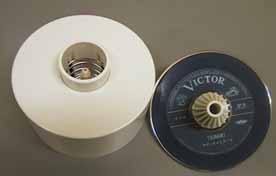 | @スキャナかデジカメで、レコードをスキャンします。 できれば同じビクターレーベルが良い。ただしサザンのレーベルは私がスキャンしたものと別デザインだったので、あえてもっと古い「流行歌」とか印刷してあるものを使いました。 A画像編集ソフトで「TSUNAMI」とか「サザン」とか文字を入れる。 これはご自由に。。。 B専用シールへ印刷してCD-Rに貼り付ける。 全面貼付は下の写真のような専用の用具を使わないと失敗します。 |