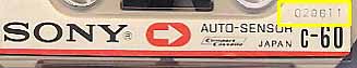 | SONYについては、あまり気にも止めなかったのですが1本ずつロットナンバーが刻印されています。他社でカセットのラベルに刻印されているモノは発見できませんでした。ちょっとした事ですが品質に対する信頼性を感じました。 黄色の枠で囲んであるのがロットナンバー。皆さんも確かめてみて下さい。その後のテープも入ってました。写真は29611と刻印されてました(1973年購入のテープ) |