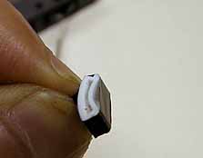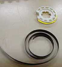 | 比較的新しいカセット(スケルトンタイプ、完全透明タイプに多い)では上記のハドメの長さ、しなやかさがあるためリーダーを取り去って直接磁気テープをはめ込む事が可能です。 |
