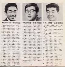 画像は中波〜深夜放送と遠距離受信で取り上げたオールナイトニッポンテーマ曲「ビター・スウィート・サンバ」(ティファナ・ブラス)のシングル版ジャケットの裏面。当時のパーソナリティーの顔写真と紹介記事で中央がカメこと亀淵社長。 このところメディアへの露出が多く管理人の同世代の話題でも「カメも老けたなぁ」とか「カメがドア(ライブ・ドア)に首をはさまれた」とか上場企業の社長を肴に勝手なことを申しております(^^; それだけ深夜放送やパーソナリティーに親しみを感じた世代だからでしょう。 このサイトはメディアの話題といってもフジテレビやホリエモンのとった手法の是非や姿勢を論じる場所では無いのですが「アナログ世代」と「デジタル世代」の感覚の差は感じますネ。「カメも老けたなぁ」と発した同世代の友人・知人の誰一人「フサフサの黒髪」を持つ者はいません(^^; |