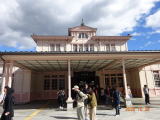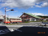 交差点の奥に「日光杉並木碑」が立っている。薄暗い並木を歩くと、右側に東武日光線の日光駅がある。こちらの方が賑わっている。
