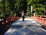 橋の向こう側には「深沙王堂」があり、その傍らに太郎杉が聳える。樹齢550年、樹高43m、目通り幹周囲5.75mの大杉である。