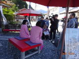 日光道中を完歩して、駅まで歩いて戻る途中団子屋さんで「阿佐ヶ谷姉妹」がロケをしていた。団子の歌を歌ったり、団子を食べたりしていた。