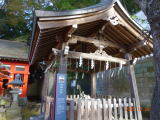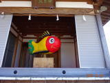 今泉4丁目バス停の先に「八坂神社」がある。康平6年(1063)宇都宮城の鬼門除けとして創建された神明社。伝統の神楽は市無形文化財。神楽殿には「黄ぶな」が吊るされていた。黄ぶなは郷土玩具で、無病息災を願う縁起物である。江戸時代に天然痘が流行った時、黄色い鮒を食べて治ったという伝説が由来とされている。