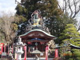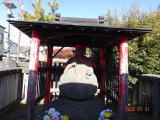 上町交差点を右折すると「光明寺」がある。宝暦9年(1759)の鋳造、高さ3mの青銅不動明王が岩の上に鎮座している。