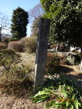 「史跡奥州街道(古道)」標識を右の道に入る。山道をだらだら下がっていくと、「高塩背山墓道標」がある。(代々喜連川神社の神職を勤める家の生まれ。歌人を志し若山牧水と信仰があった。)ここを入っていくと墓があるらしい。山道が終わるとまた標識がある。