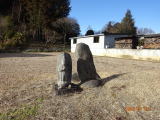 その先の松山交差点を右に行くと「薬師堂」がある。廃仏毀釈で廃寺となった。境内には文政2年の名号碑「南無阿弥陀仏」等がある。「奥都城」と書かれた墓石が数基あるので、調べると(神道におけるお墓の名称)とあった。「おくつき」と呼ぶらしい。