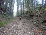木製道標を左折すると、「河東碧梧桐句碑」に行く。「坂を折りて左右に藪あり 栗おつる」正岡子規門下の秀才であった。傍には弥五郎坂開削の碑がある。私たちは直進する。