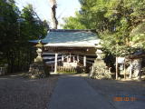 その先の左に八幡神社社票があり、その奥の方に神社が見える。櫻野村の鎮守。疲れていたが、本殿が総ヒノキ白木造りで見事な彫刻が施されていると書いてあったので、行くことにした。実際は、本殿は覆い屋の中で、見ることはできない。窓にカメラをくっ付けて少し見る事ができた。