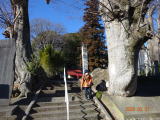 街道の方から神社へ行くと石段の両側に樹齢300年の大きなケヤキが立っている。