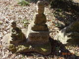 消防団の建物を過ぎると、右側に庚申塔が3基祀られている。